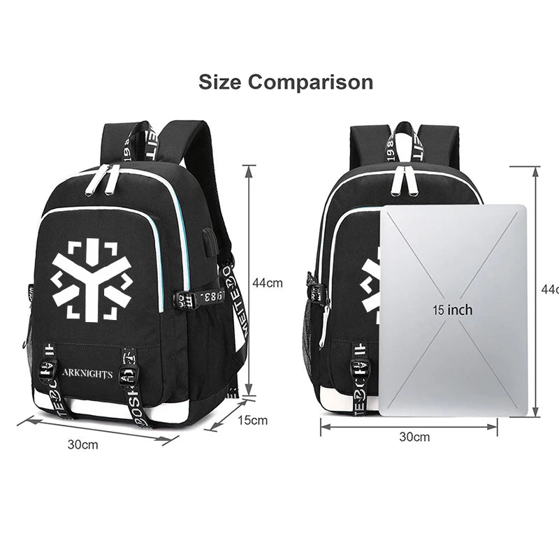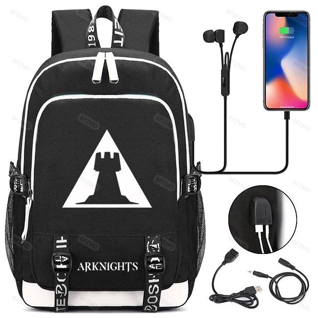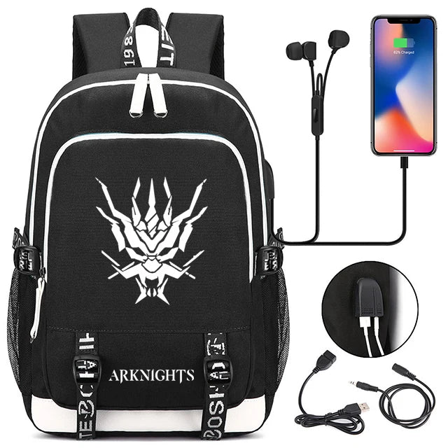 This Canvas Game Arknights backpack is perfect for school, travel, and daily use. It features a USB charging port for convenient charging on the go.