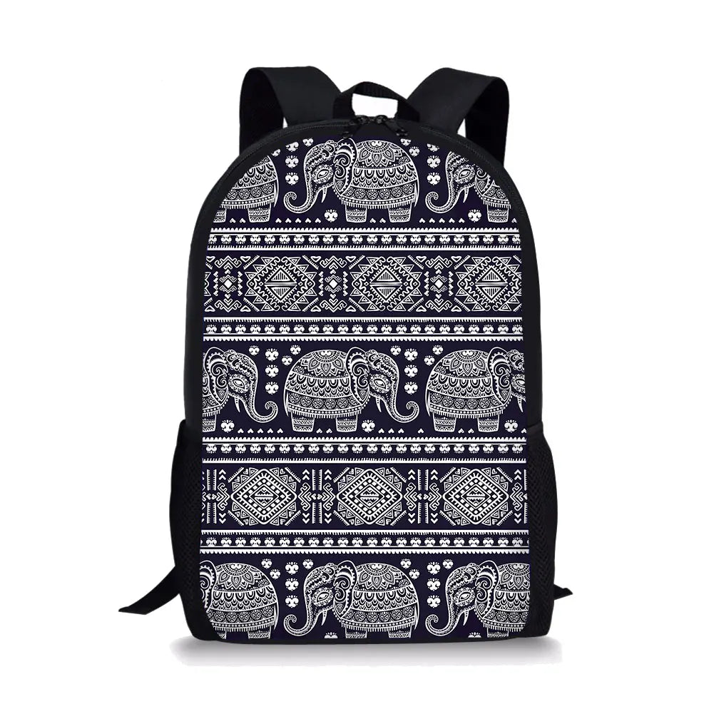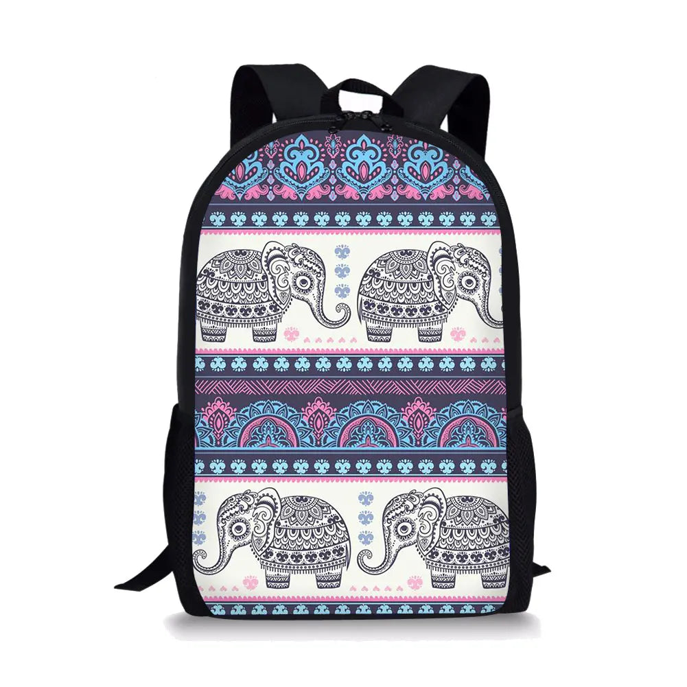Boho Elephant Print Girls School Bags Retro All-match Backpack