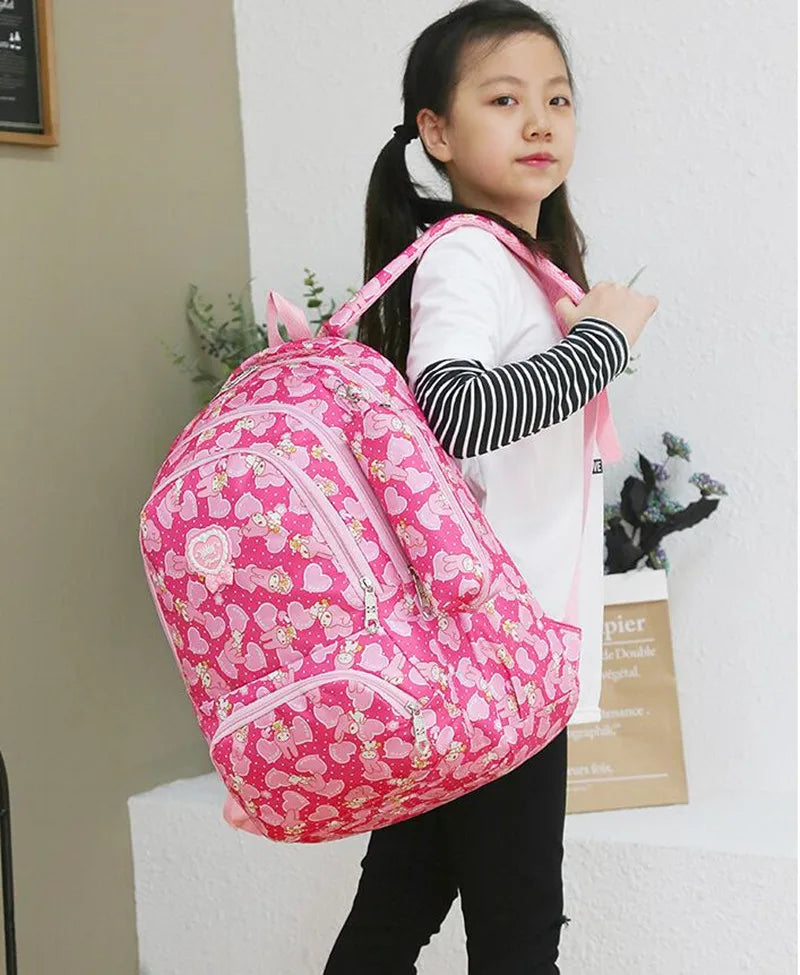 Description:This sweet and casual backpack is perfect for elementary school girls, offering a comfortable fit and attractive design.Features: Lightweight and sturdy construction for daily use Adjustable shoulder strap for a personalized fit Features a charming and stylish print for a fun look Ideal for elementary school students to carry books...