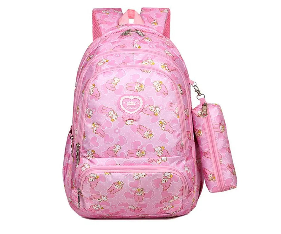 This sweet and casual backpack is perfect for elementary school girls, offering a comfortable fit and attractive design.