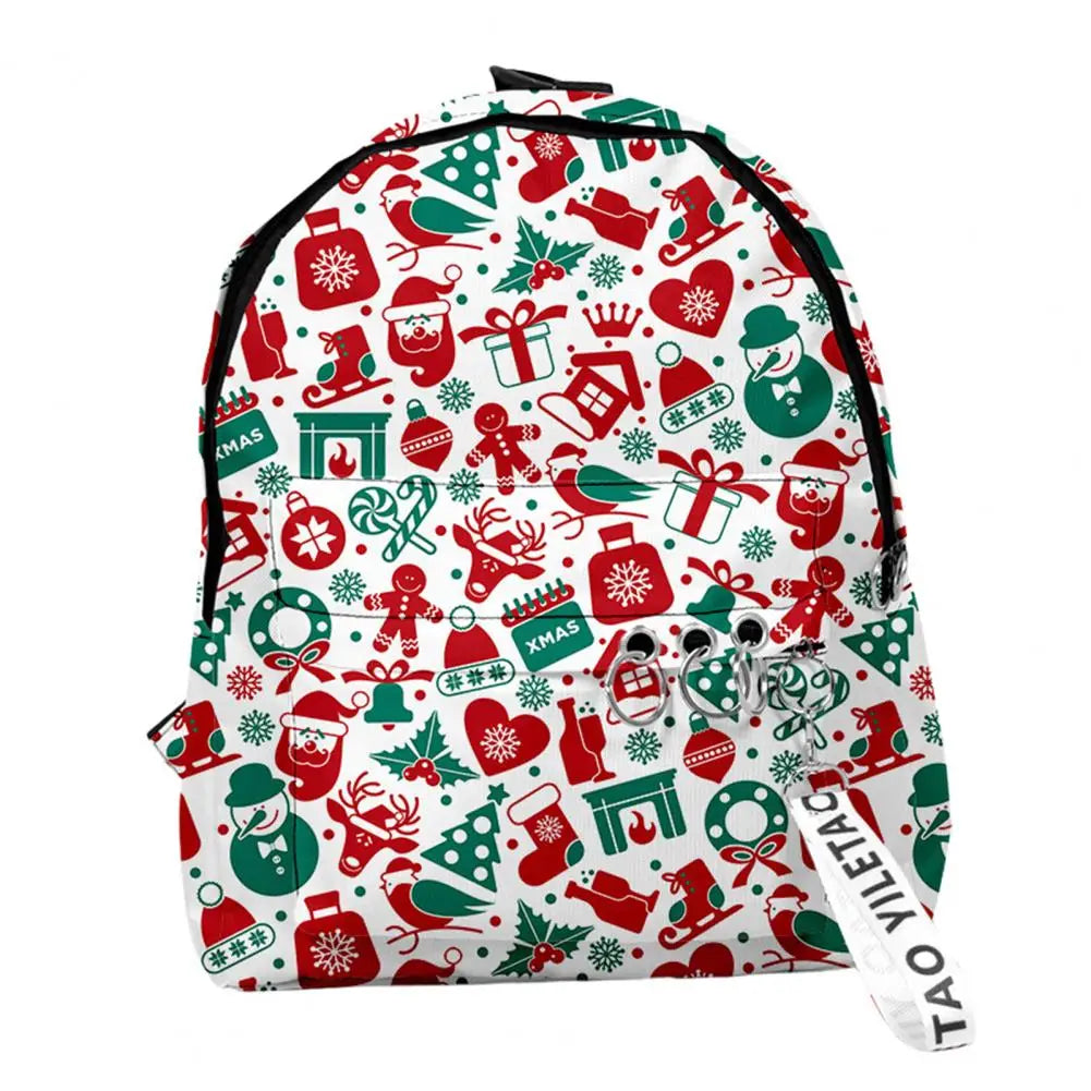 Christmas Students Backpack Cartoon Xmas Element Print Large Capacity School Bag