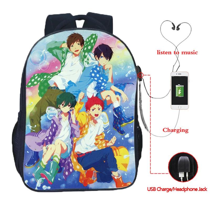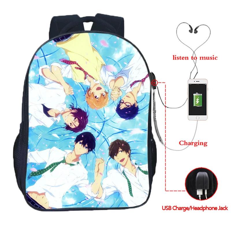 Free! Swim Club USB Charge School Bag School Backpack Casual USB Charging School