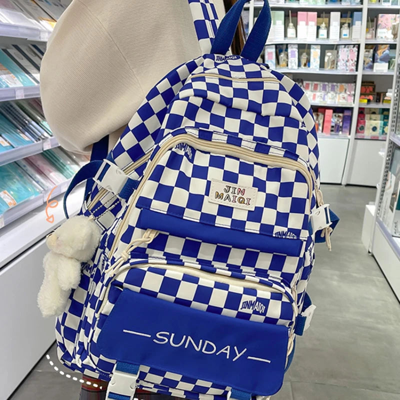 Girls Schoolbag Grid Design High Capacity Book Pack Backpack