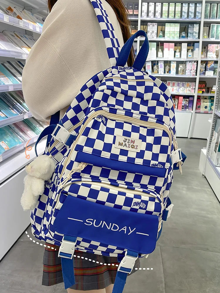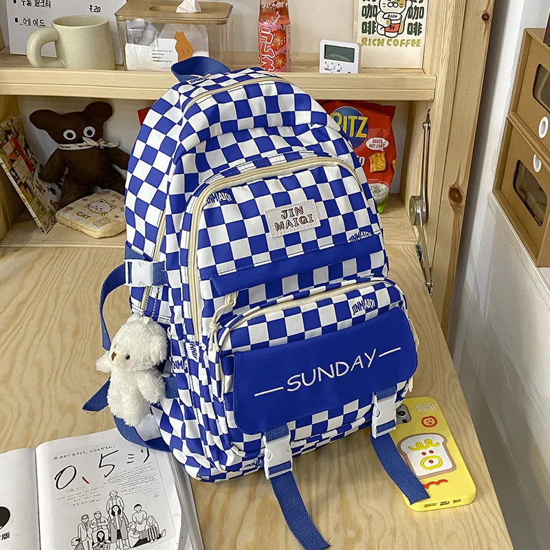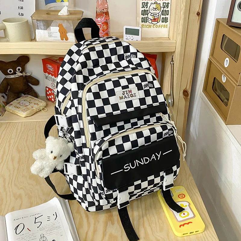 Girls Schoolbag High Appearance Level Large Capacity Grid Laptop Book Backpack