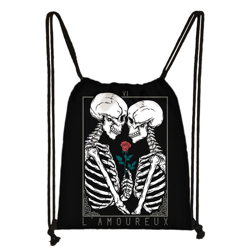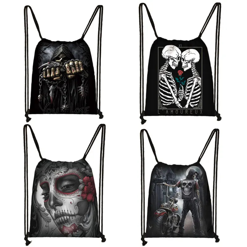 Gothic Punk Death Skull Drawstring Bag Men Travel Bag Grim Reaper Backpack Boys