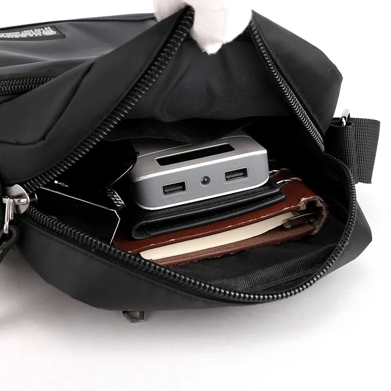 Haoshuai Men's Nylon Shoulder Messenger Bag Large Capacity Backpack