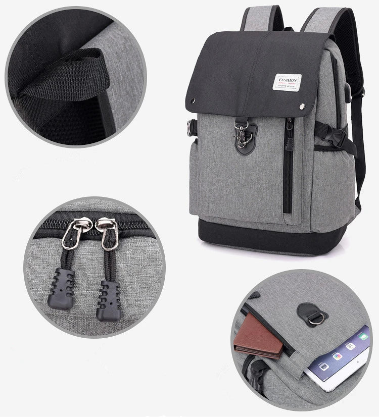 Stay organized and efficient with this multifunctional men's backpack equipped with USB charging port. Perfect for business trips and casual use.