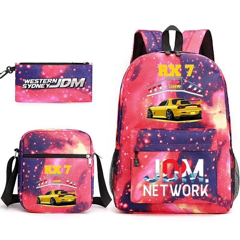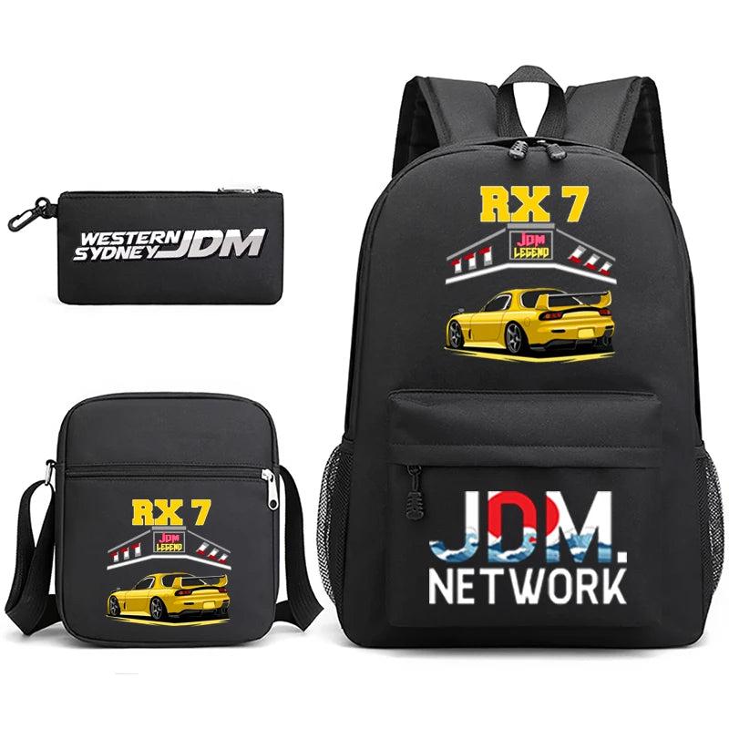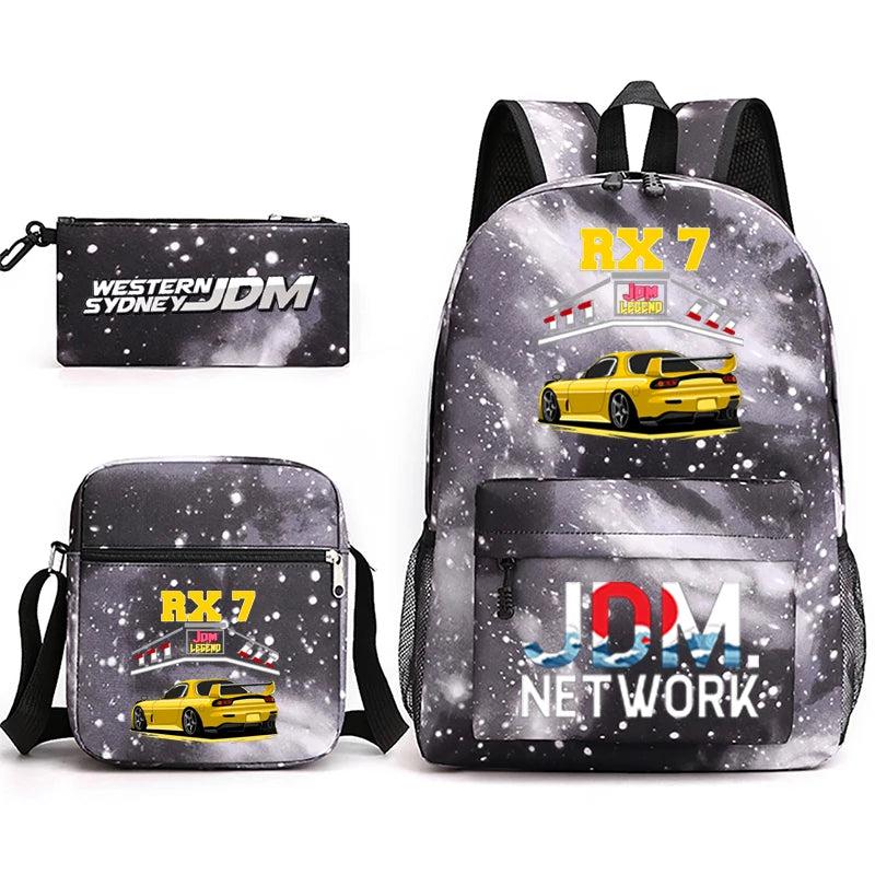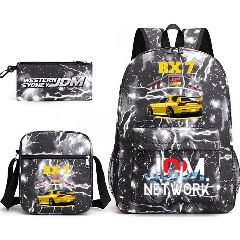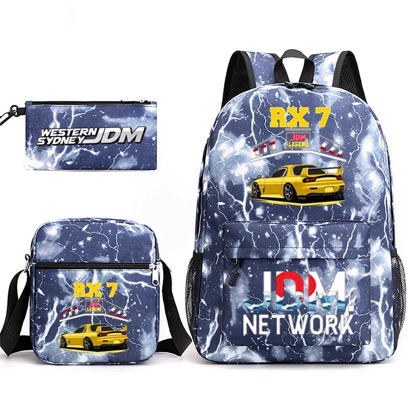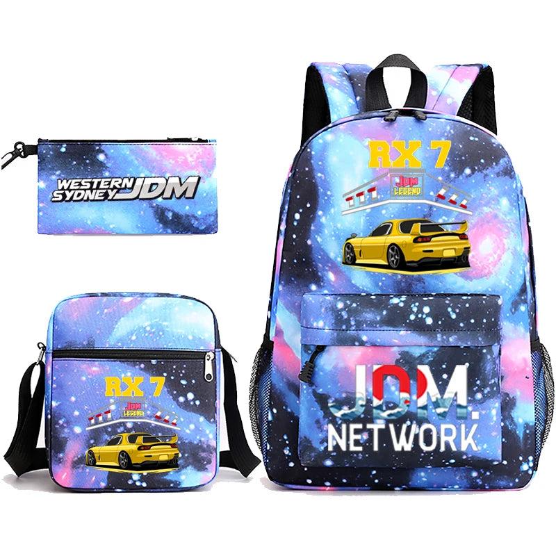 JDM Anime Backpack Print Men's Laptop Bag with Pencil Bag