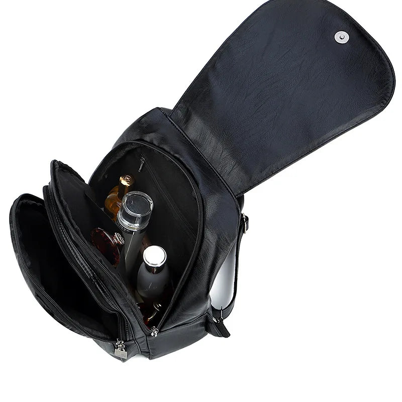 This backpack is made of soft PU leather, perfect for everyday use. It has a large capacity and is ideal for school or leisure activities.
