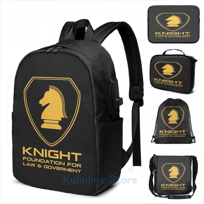 Stay charged on-the-go with this Knight Foundation themed backpack featuring a graphic print inspired by Knight Rider. Perfect for school, travel, and work.