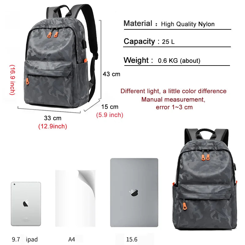 Leisure Laptop Backpack Camouflage Waterproof Travel Bag