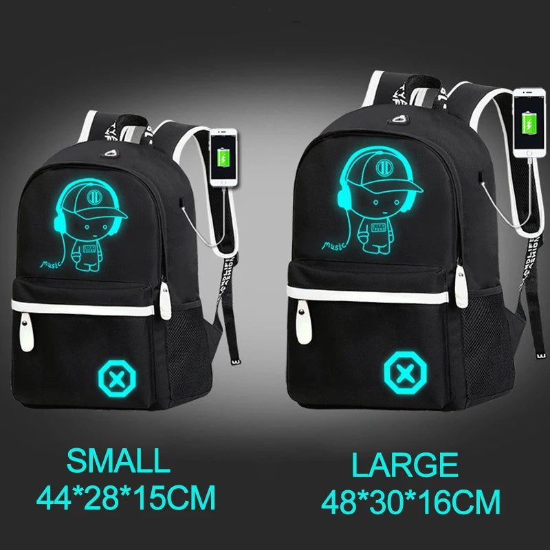 Luminous Animation School Bags USB Charge Anti-theft Laptop Backpack