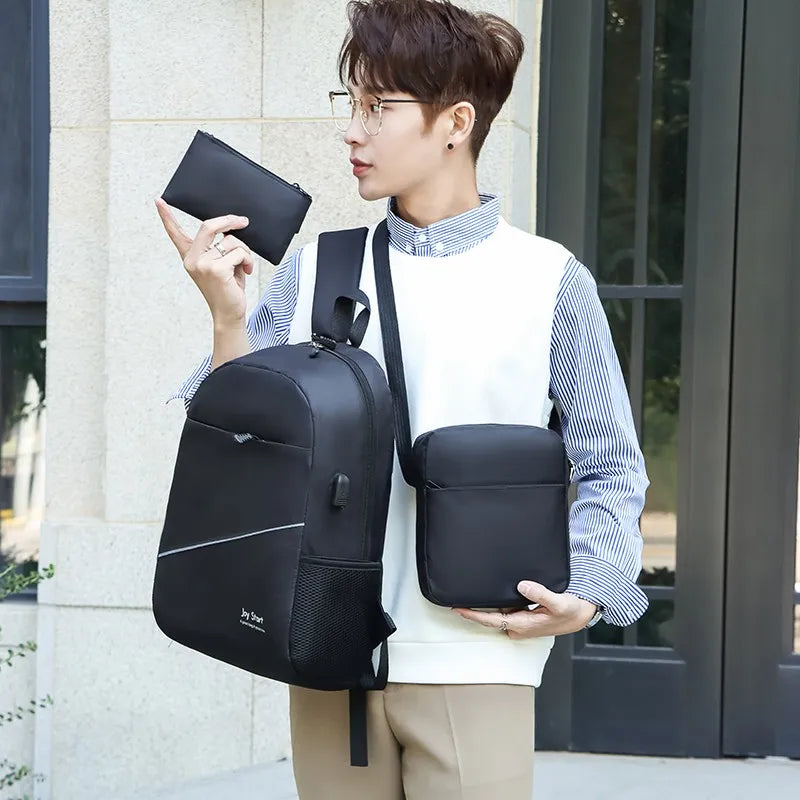 This 3 in 1 men's backpack is designed with external USB charging port for convenience. It's ideal for school, travel, and everyday use. The bag is multifunctional, waterproof, and offers ample storage space.