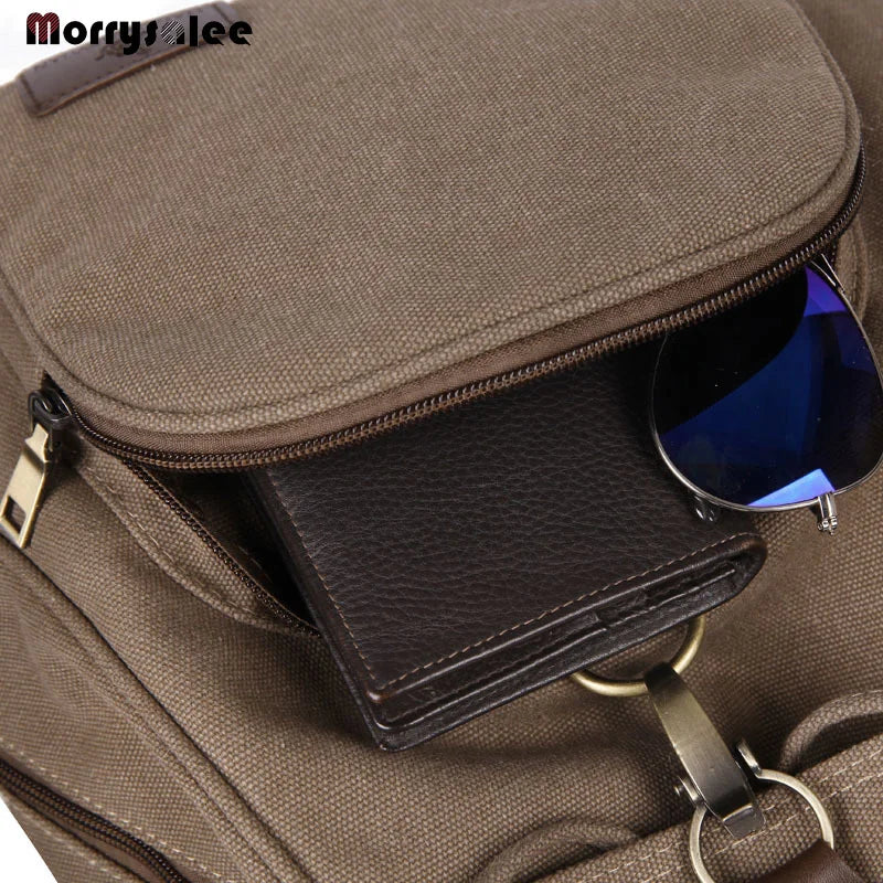 This men canvas backpack is perfect for school, travel, or everyday use. It features a solid design with a soft handle and air cushion belt, making it comfortable to carry.