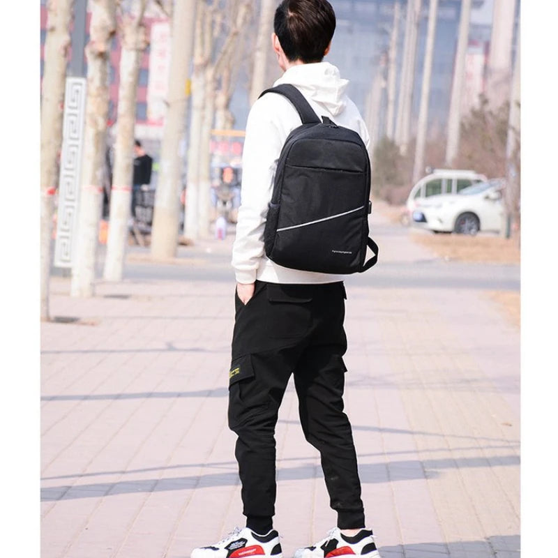 This multifunctional men's backpack is perfect for school, work, or casual use. It features a built-in USB charging port for added convenience.
