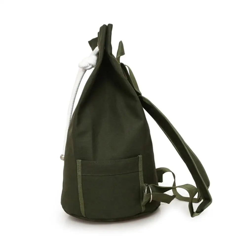 Men's Canvas Backpack Large Capacity Drawstring Bagpack Bucket Unisex