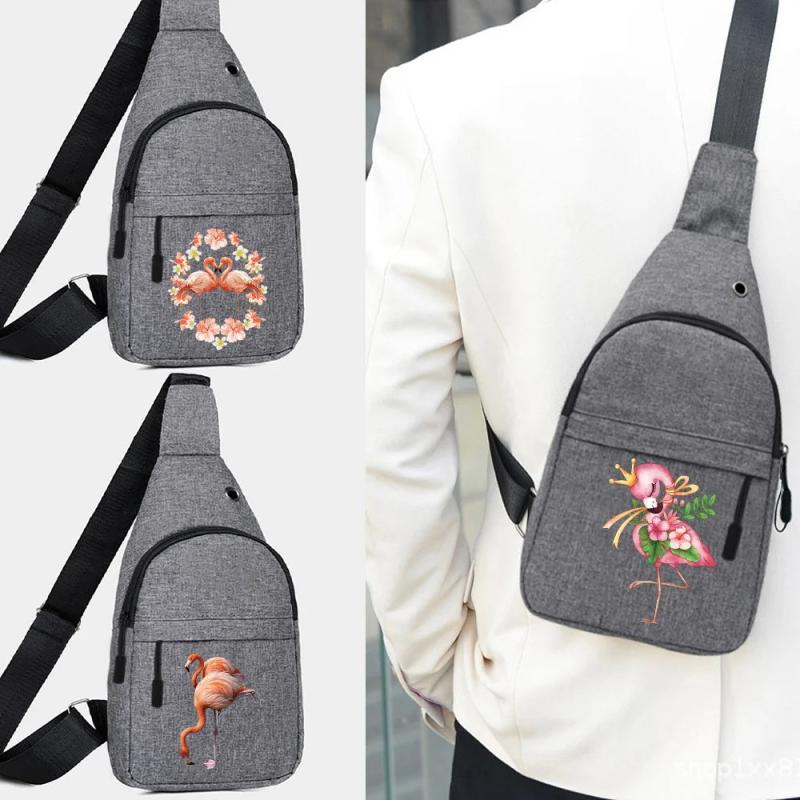 Men's Flamingo Print Crossbody Bag Sling Shoulder Canvas Chest Pack