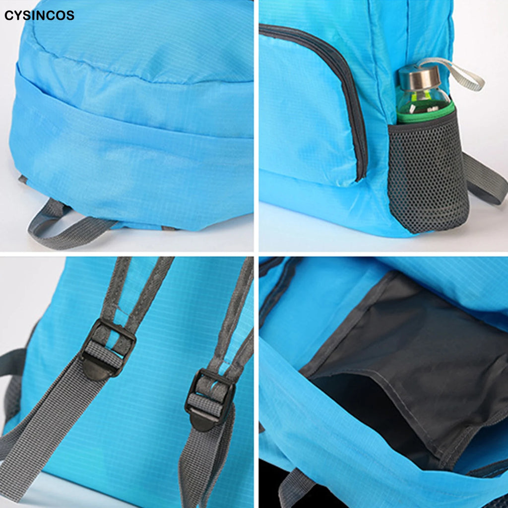 This men's backpack is designed for outdoor activities like camping, hiking, and running. It can be easily folded for convenience.