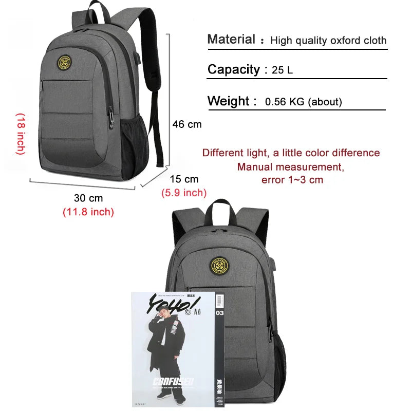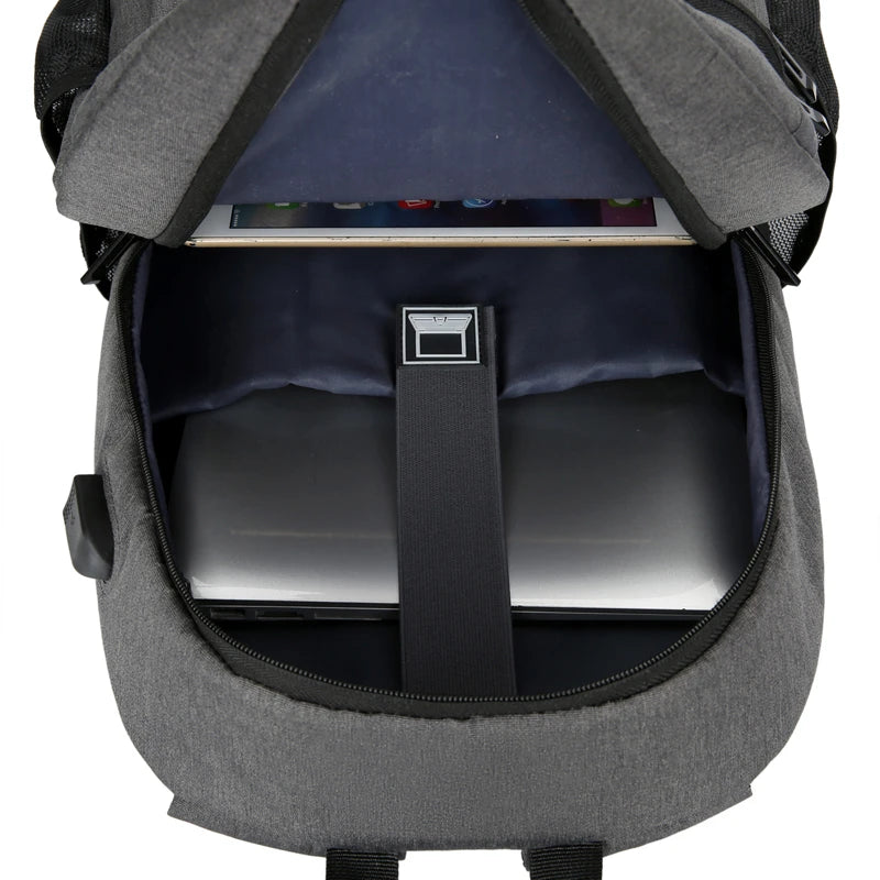 Stay organized and stylish with this grey backpack designed for men. Perfect for business, travel, or school, this backpack can hold a 15.6-inch laptop and all your essentials.