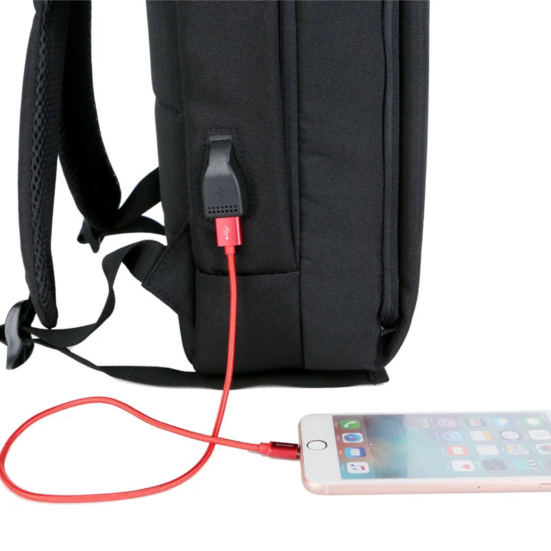 Stay organized and prepared with this stylish men's backpack featuring a USB charging port. Perfect for business trips and travel.
