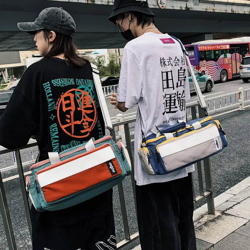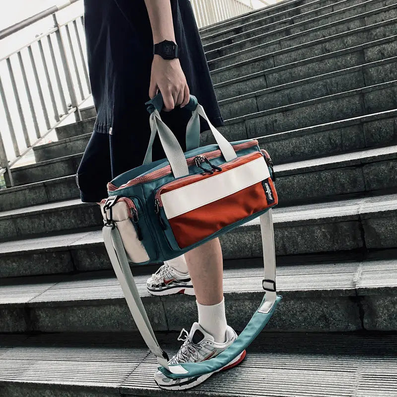 This men's messenger bag is a Japanese tooling bag with a large capacity for student travel storage.