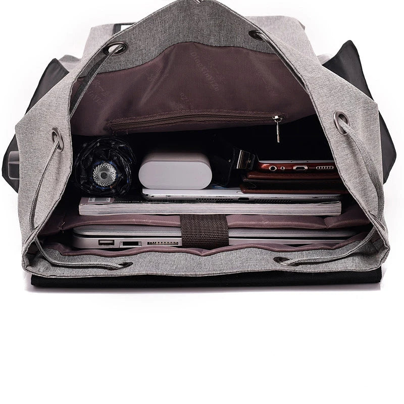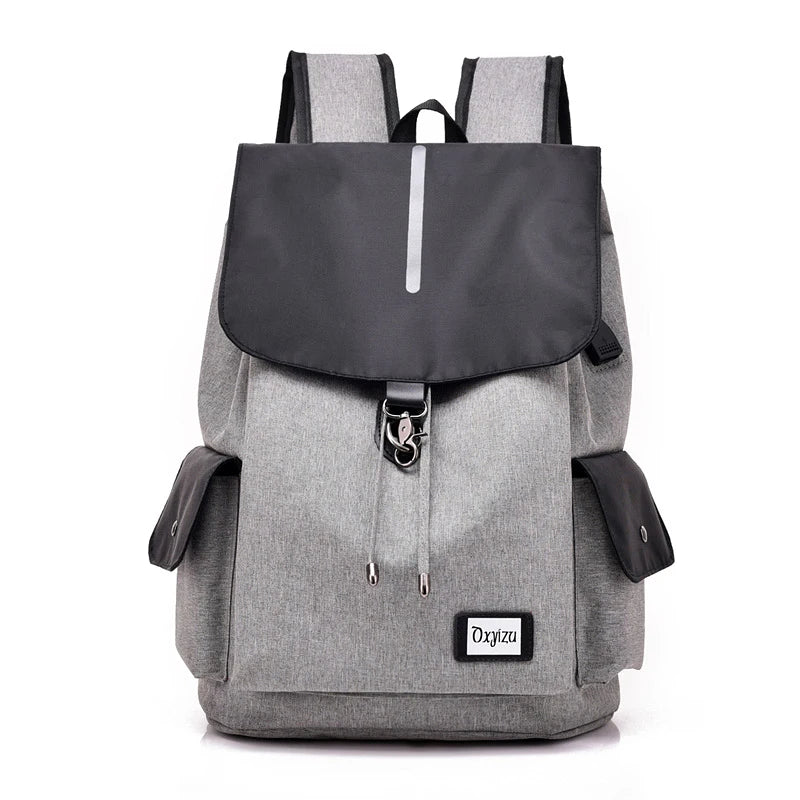 This men's backpack is designed with a USB charging port for convenience. Made of durable nylon material, it is perfect for school, work, or travel.