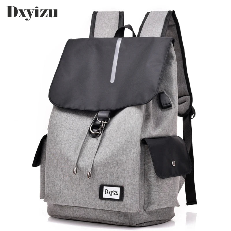 Men's USB Charging Backpack Laptop Bags Nylon Preppy School Bag Travel