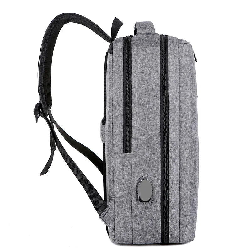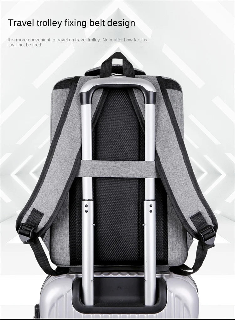 This men's backpack is made of waterproof Oxford cloth and features a USB charging port. It's perfect for business travel with its reflective strip.