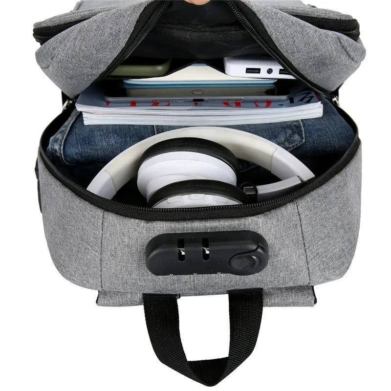 Stay stylish and organized with this waterproof Oxford urban backpack designed for laptops up to 13.3 inches. It features a USB charging port and comes in a sleek gray color.