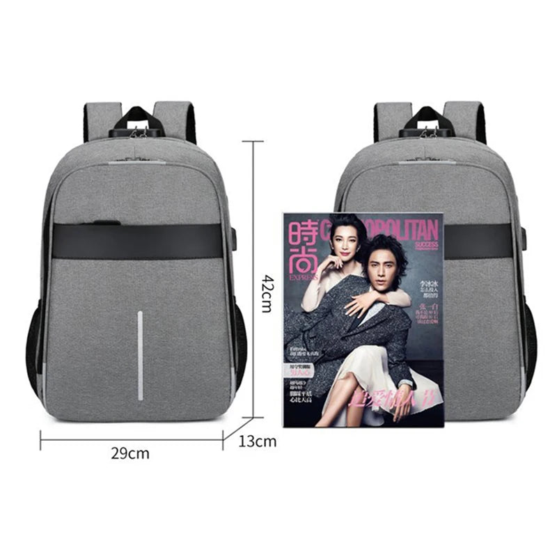 Men's Waterproof Oxford Urban Backpack Laptop 13.3 Inch USB Charging Gray Rucksa