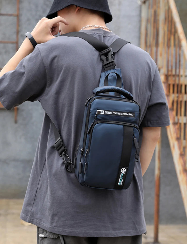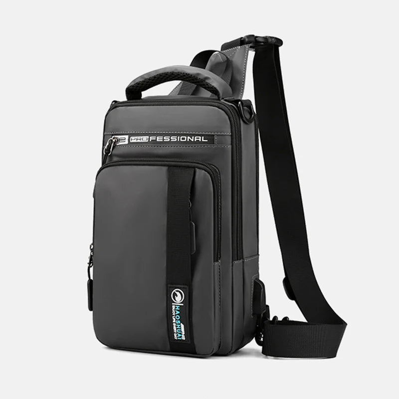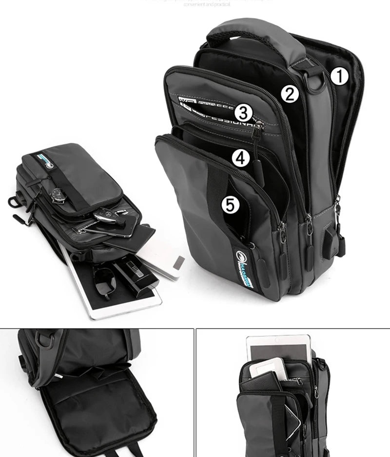 This versatile chest bag is designed with a USB charging port for on-the-go convenience. The multi-layer design offers ample storage space, making it ideal for outdoor activities or daily use.