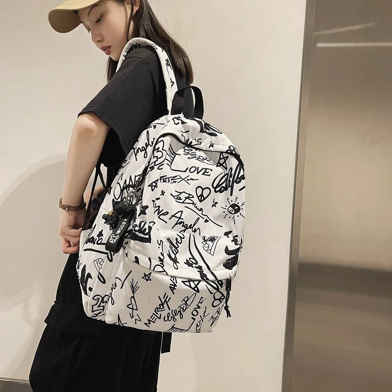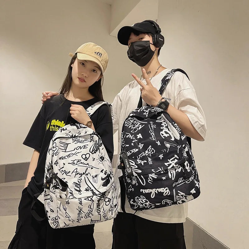 This printed backpack is perfect for junior high school students, couples, and anyone who needs a durable and stylish bag. Made of high-quality nylon material, it offers a large capacity for all your essentials.