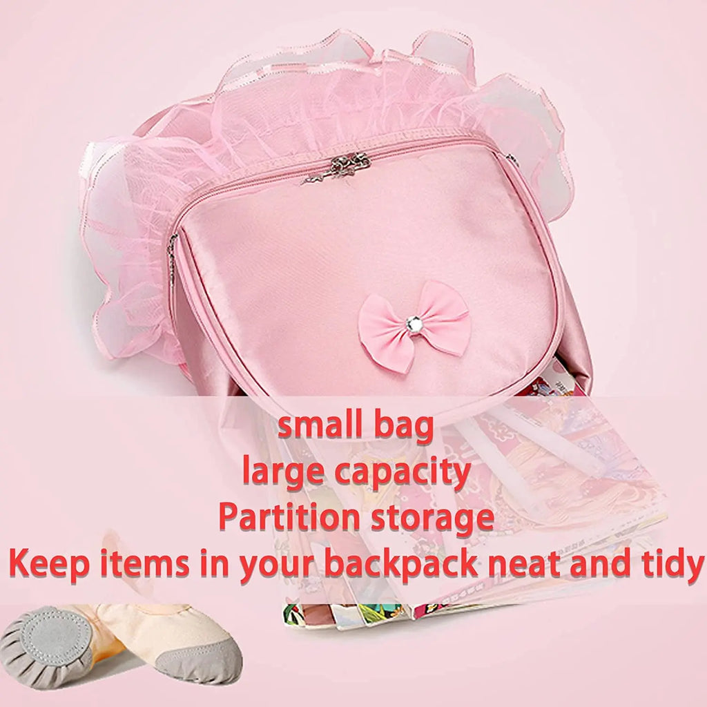 Adorable ballerina dance backpack with separate shoe compartment, perfect for your toddler's dance gear.