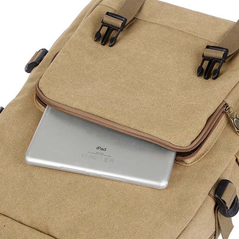 This men's backpack is perfect for students and travelers. Made of durable canvas, it is spacious and stylish.