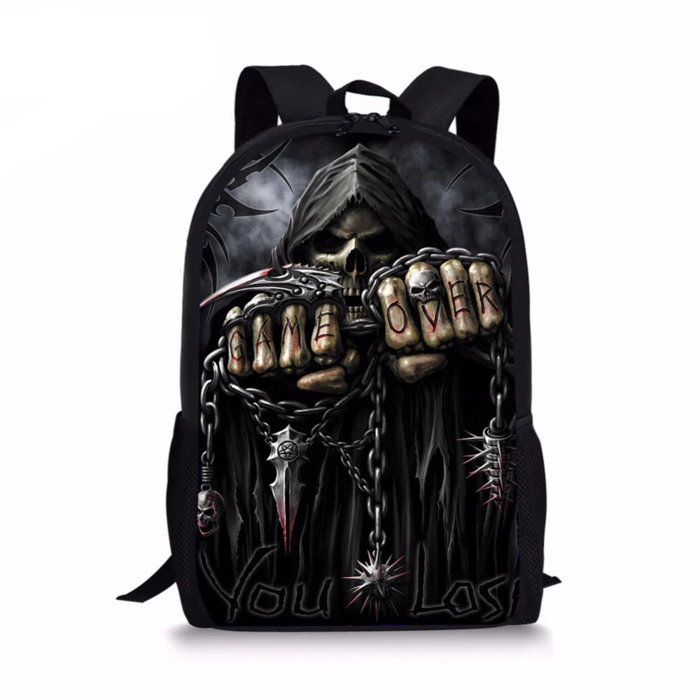 Skull Print Men Backpack Kids Boys Girls School Bags Teenage Bagpack