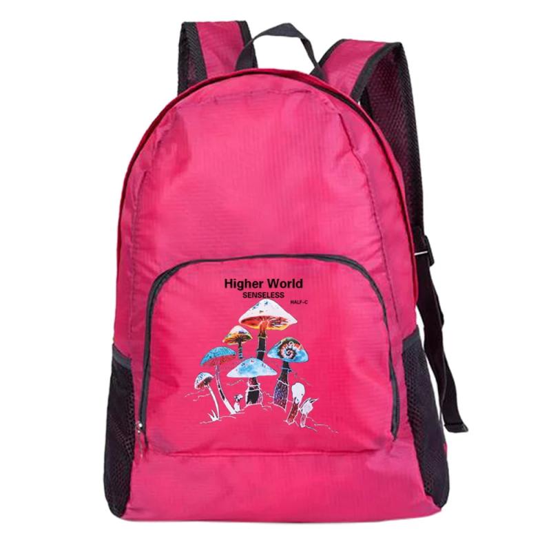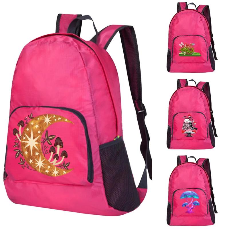 Stay prepared for your outdoor adventures with this lightweight and compact foldable backpack. Featuring a mushroom print design, this pack is perfect for hiking, cycling, and travel.