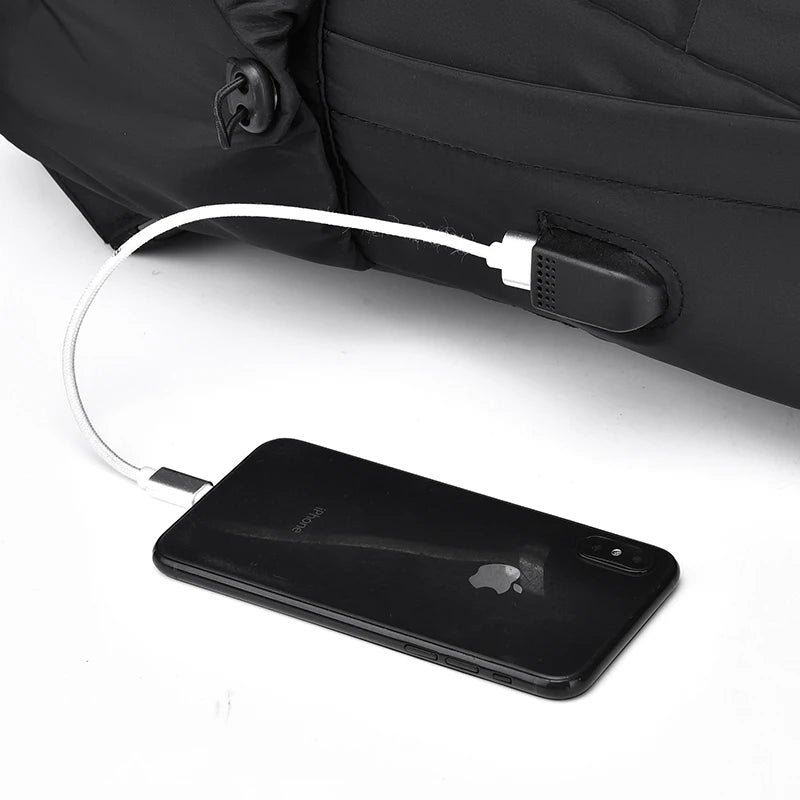 Stay organized and stylish on your business trips with this ultralight nylon backpack featuring a USB charging port. Perfect for men, it's durable, comfortable, and water-resistant.