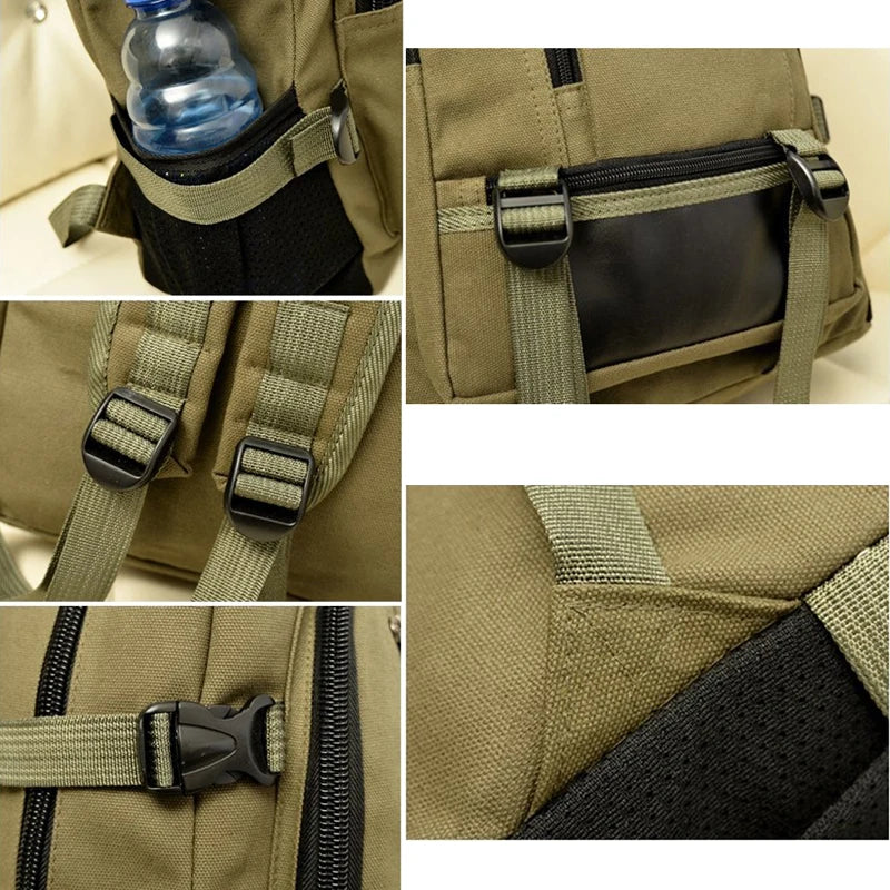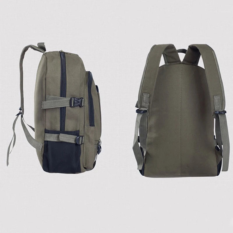 This men's backpack is perfect for travel, camping, school, and work. Made of durable canvas material, it offers high capacity and organization for all your essentials.