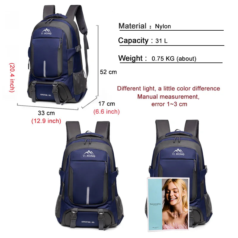 This backpack is designed for college students and outdoor enthusiasts. It is waterproof and perfect for hiking, sports, and school. The large capacity provides ample storage space.