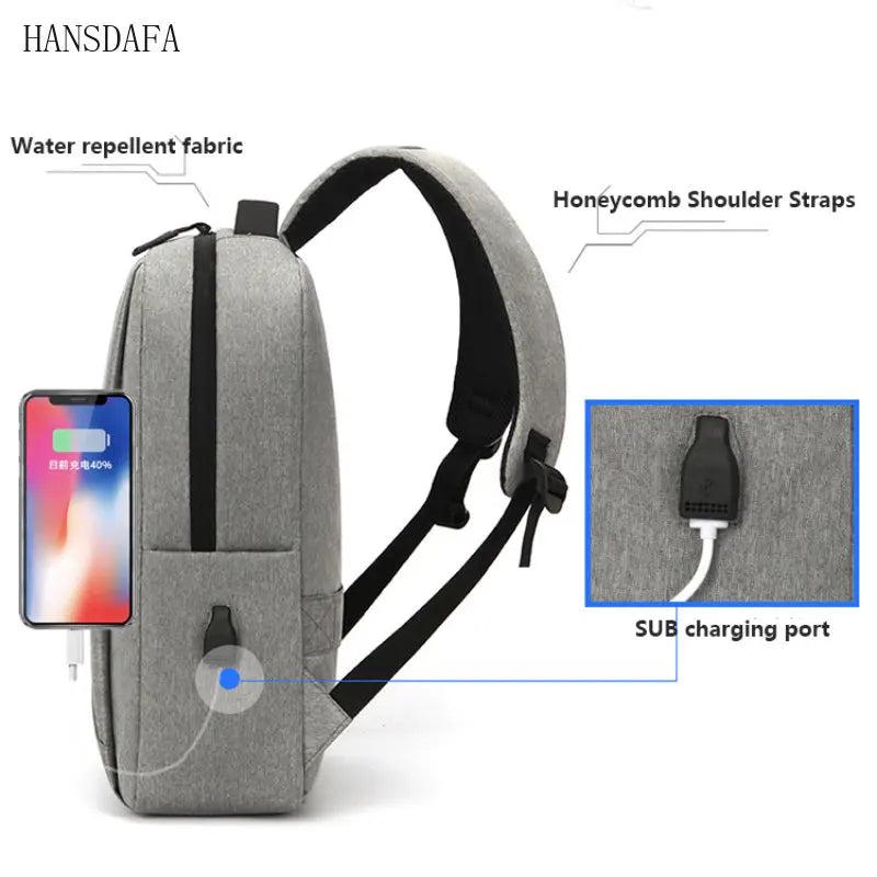 Waterproof Men's Backpack USB Port Canvas Casual Travel Backpacks