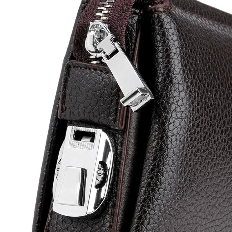 This PU leather clutch bag is a stylish and functional accessory for men. It features a password lock for added security and has a large capacity to hold all your essentials.