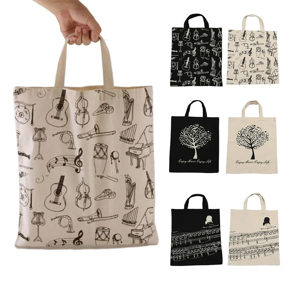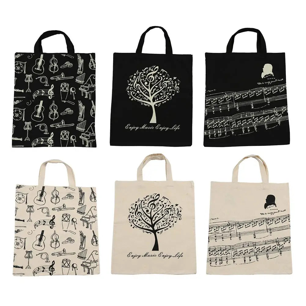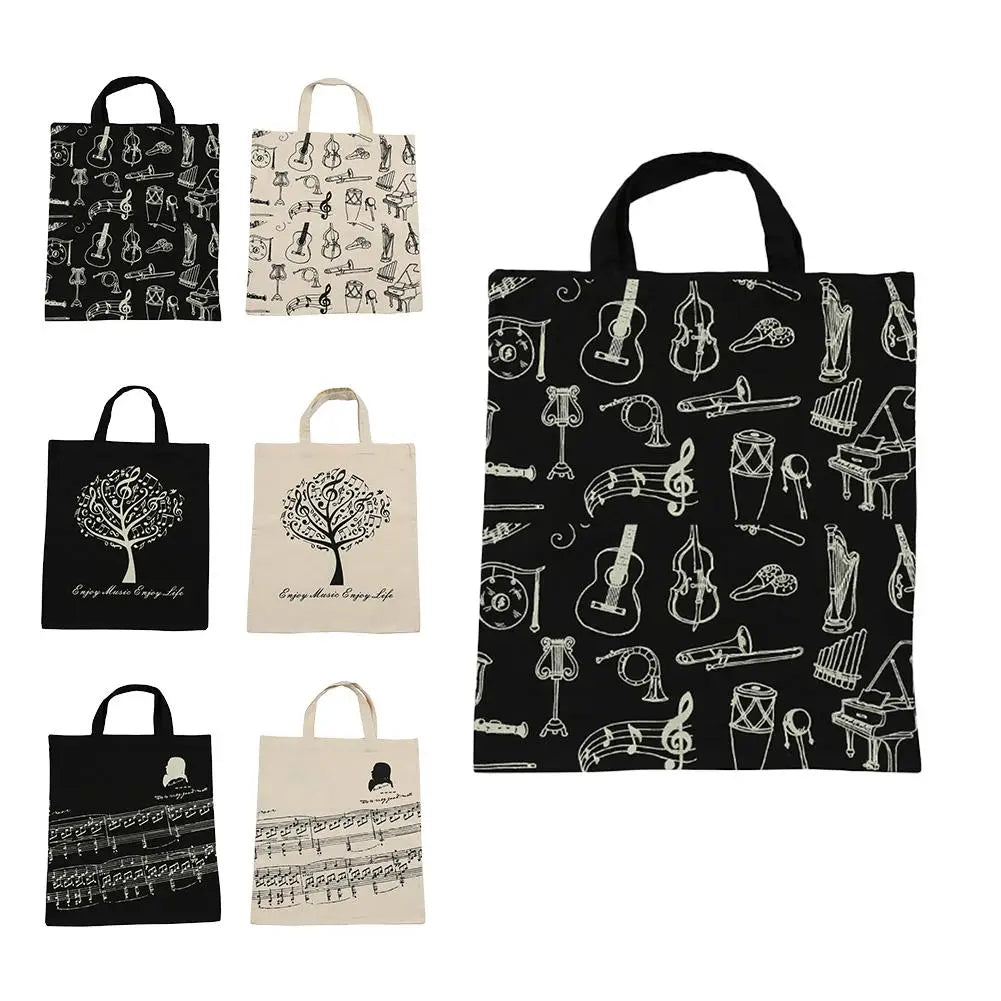Cotton Linen Music Note Tote Shopping Bag Keyboard Pattern Handbag Music Bag