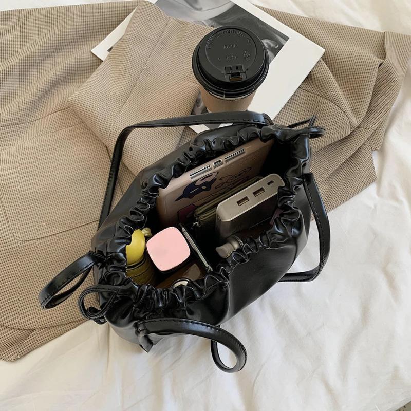 Description:Stay stylish with this solid handbag made of PU leather. It's perfect for carrying your essentials like phone and lipstick.Features: Classic PU leather handbag for daily use Drawstring closure with solid design Can be used as an underarm bag or shoulder bag Ideal for carrying phone, lipstick, and other essentials...