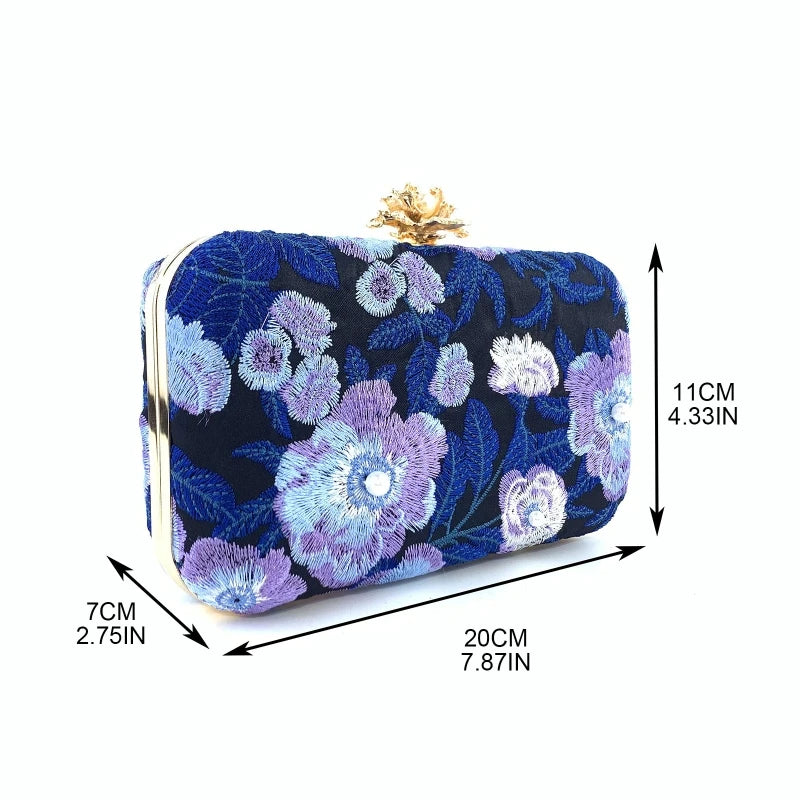 Make a statement with this elegant evening bag featuring embossed embroidery flower design. Perfect for anniversary and engagement celebrations.