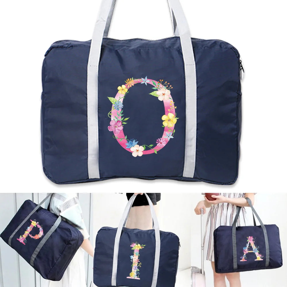 This pink letter patterned travel bag is a must-have for all your travel needs. It is foldable, has a large capacity, and is perfect for organizing your clothing. The portable design makes it easy to carry around.