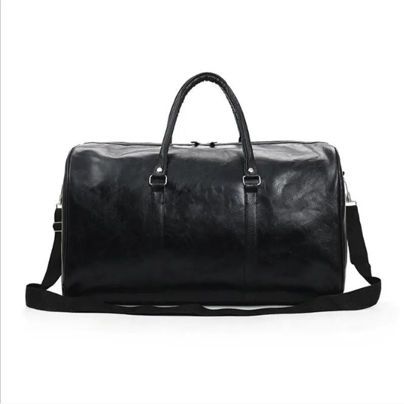 This stylish and spacious travel bag is perfect for men on the go. Made of high-quality PU leather, it features a zippered closure and a shoulder strap for easy carrying.