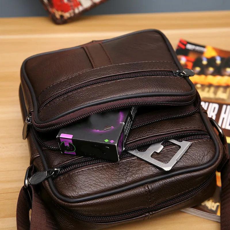 This leather crossbody men messenger bag is perfect for the hot male on the go. It's a small man shoulder bag great for travel and everyday use.