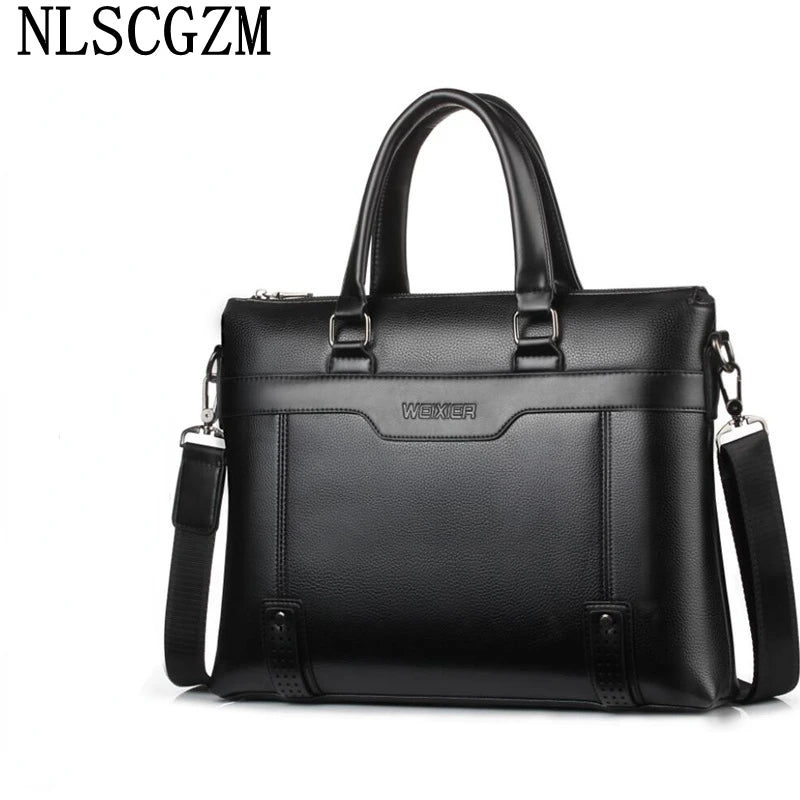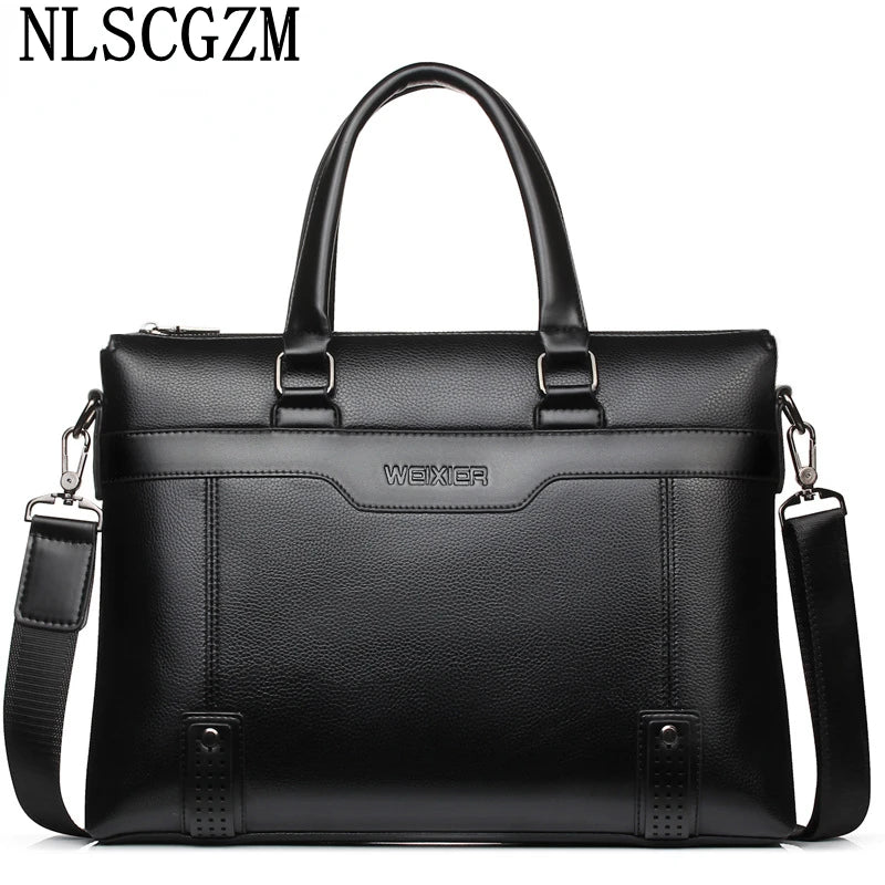 Elegant leather laptop shoulder bag designed for men with ample space and high-quality materials.