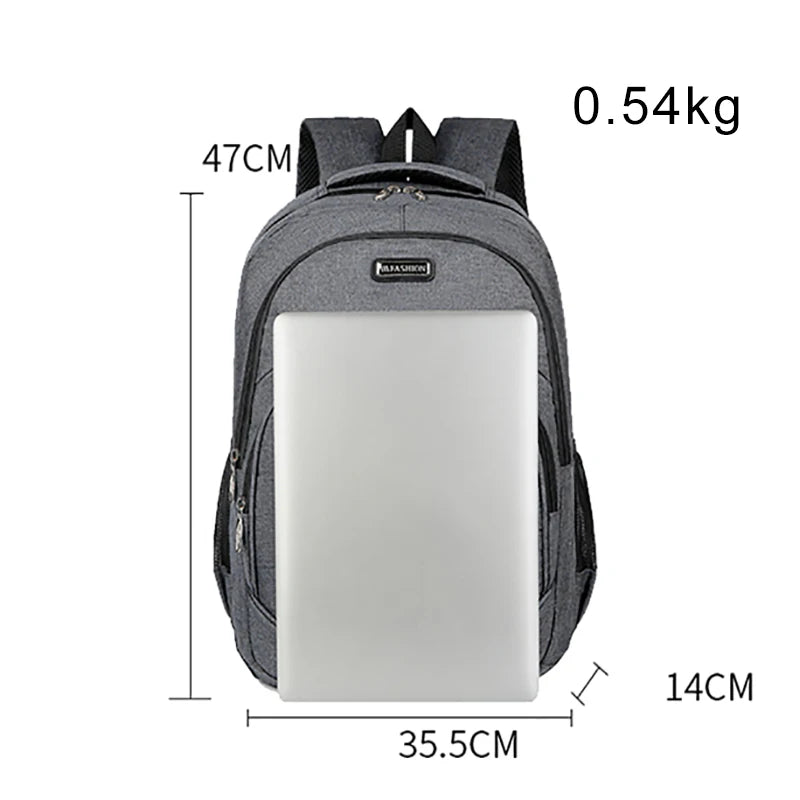 This men's backpack is designed for travel and business use. Made of Oxford cloth, it is waterproof and can hold laptops up to 15.6 inches.