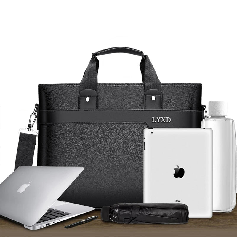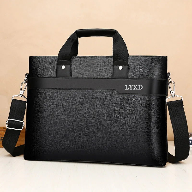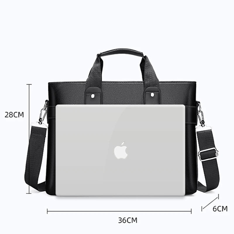 This men's briefcase is the perfect accessory for business professionals. It features a shoulder strap for easy carrying and multiple compartments to keep your belongings organized.